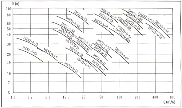 【不銹鋼防爆自吸泵CYZ-A型自吸式油泵】性能型譜圖: