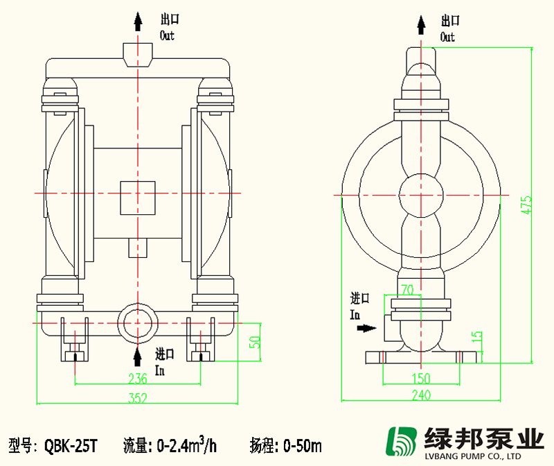 QBK-25TD鑄鐵氣動(dòng)隔膜泵外形安裝尺寸CAD圖: