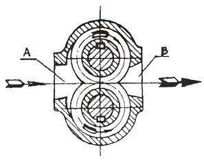 嚙合的齒輪在泵體內(nèi)旋轉(zhuǎn)時,輪齒不斷進入和退出跟嚙合。在吸入室,輪齒逐漸退出嚙合狀態(tài),這樣吸入室的容積逐漸增大,壓力降低,液體在液面壓力的作用下進入吸入室,隨齒輪齒間進入排出室。在排出室,輪齒又逐漸進入嚙合狀態(tài),齒輪的齒間逐漸被一齒輪的輪齒占據(jù),排出室的容積減少,排出室內(nèi)液體壓力升高,于是液體從泵的排出口被排出泵外,齒輪邊續(xù)旋轉(zhuǎn),上述過程不斷進行,形成連續(xù)的輸油過程。